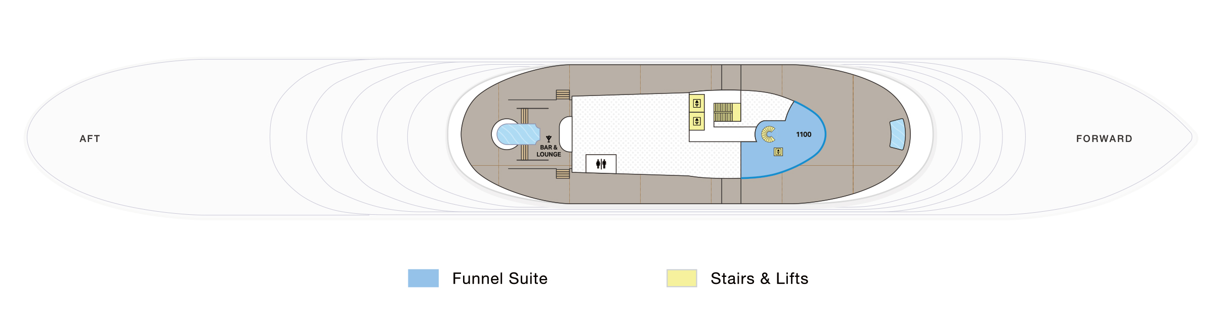 我們最大、最獨特的套房位於船的玻璃封閉漏斗內,提供三間臥室,分佈在四層起居空間中,透過全景落地窗可欣賞一覽無餘的海景。在您的私人嬉水池中享受日落暢遊,在室外健身房鍛鍊身體,並在室內或寬敞的私人露臺上享用難忘的美食。