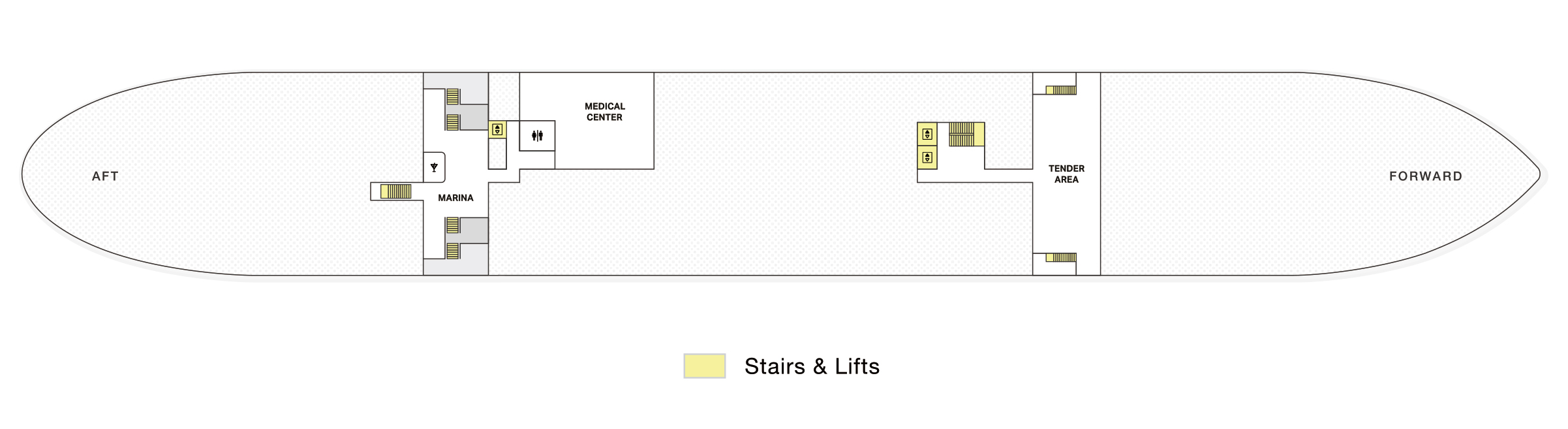 • 甲板:11, 12, 14, 15 船艙的前面區域