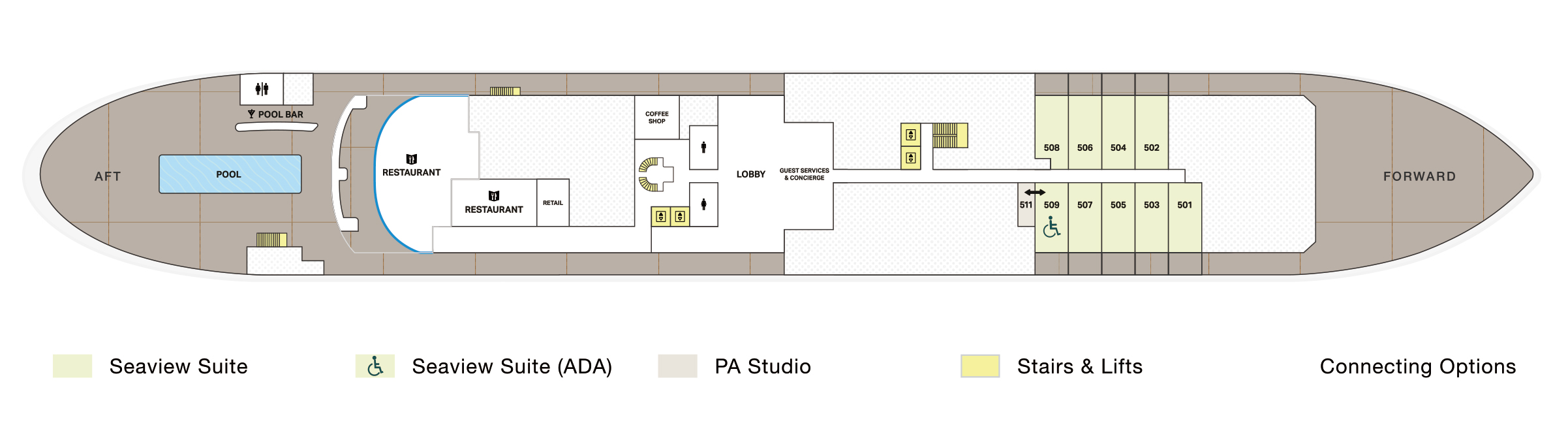 我們壯觀的遊輪擁有優雅的線條和一覽無餘的海景,擁有 95 間寬敞的套房和客房,以及世界一流的餐飲、健康和娛樂場所。它為遊輪類別創造了眾多行業第一,包括同類中最大的住宿、幾乎無限的連接和配置套房的方式,以及首次跨越世界海洋的四季無與倫比的熱情好客。